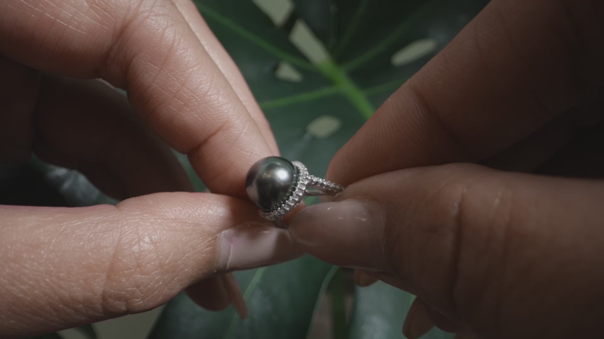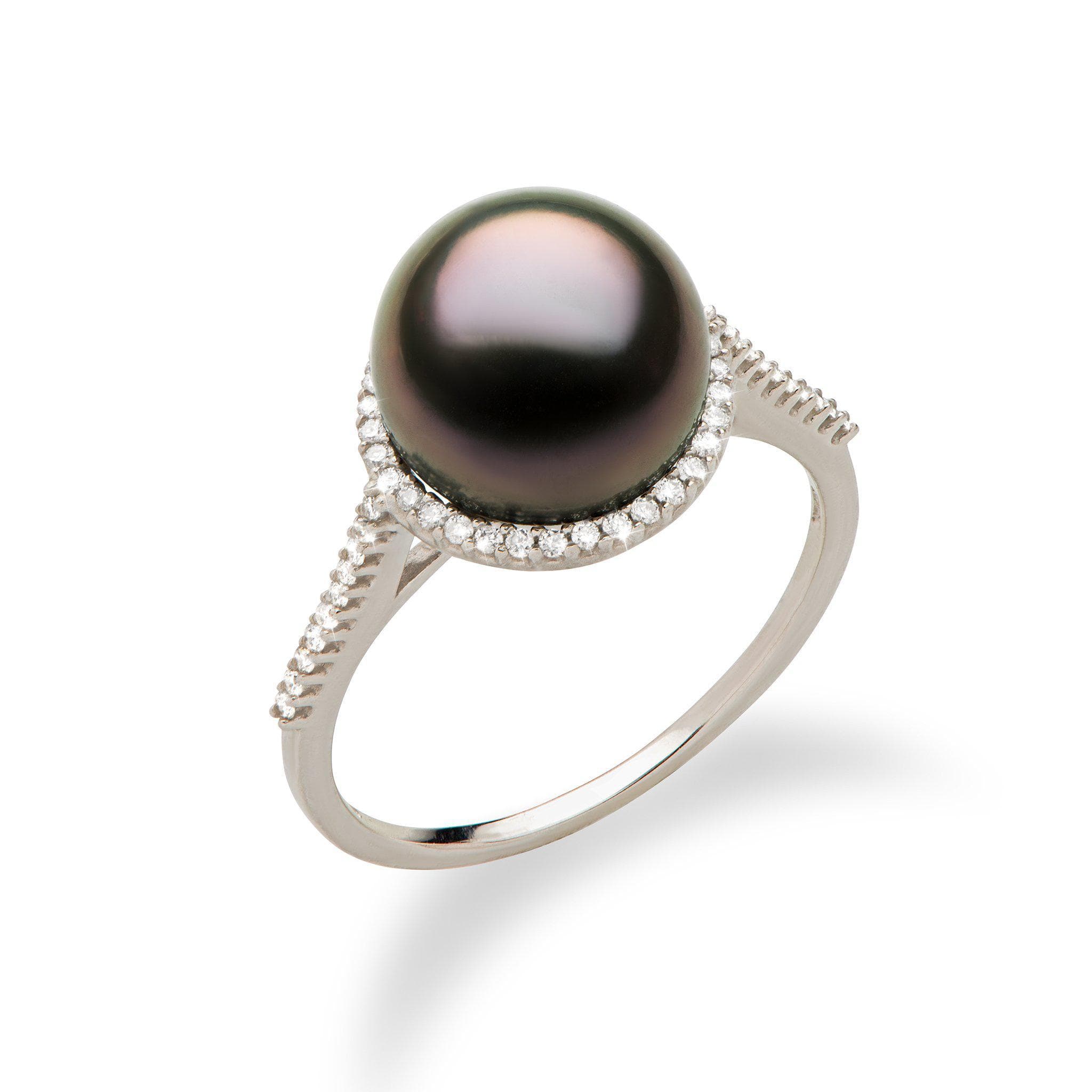 ダイヤモンド付きホワイトゴールドのタヒチアンブラックパールハローリング-9-10mm