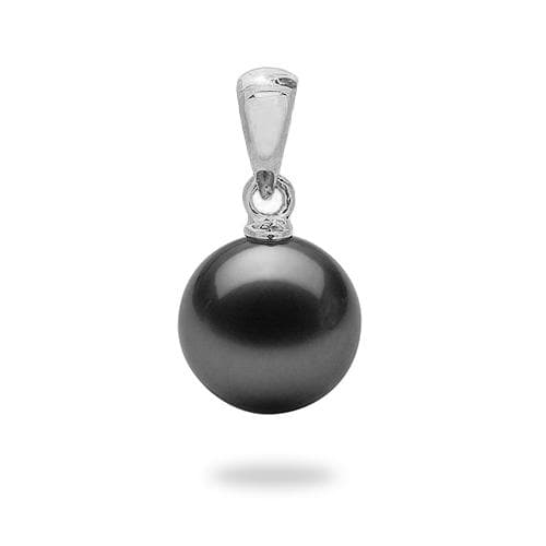 ホワイトゴールド - 9-10ミリメートルのタヒチアンブラックパールペンダント