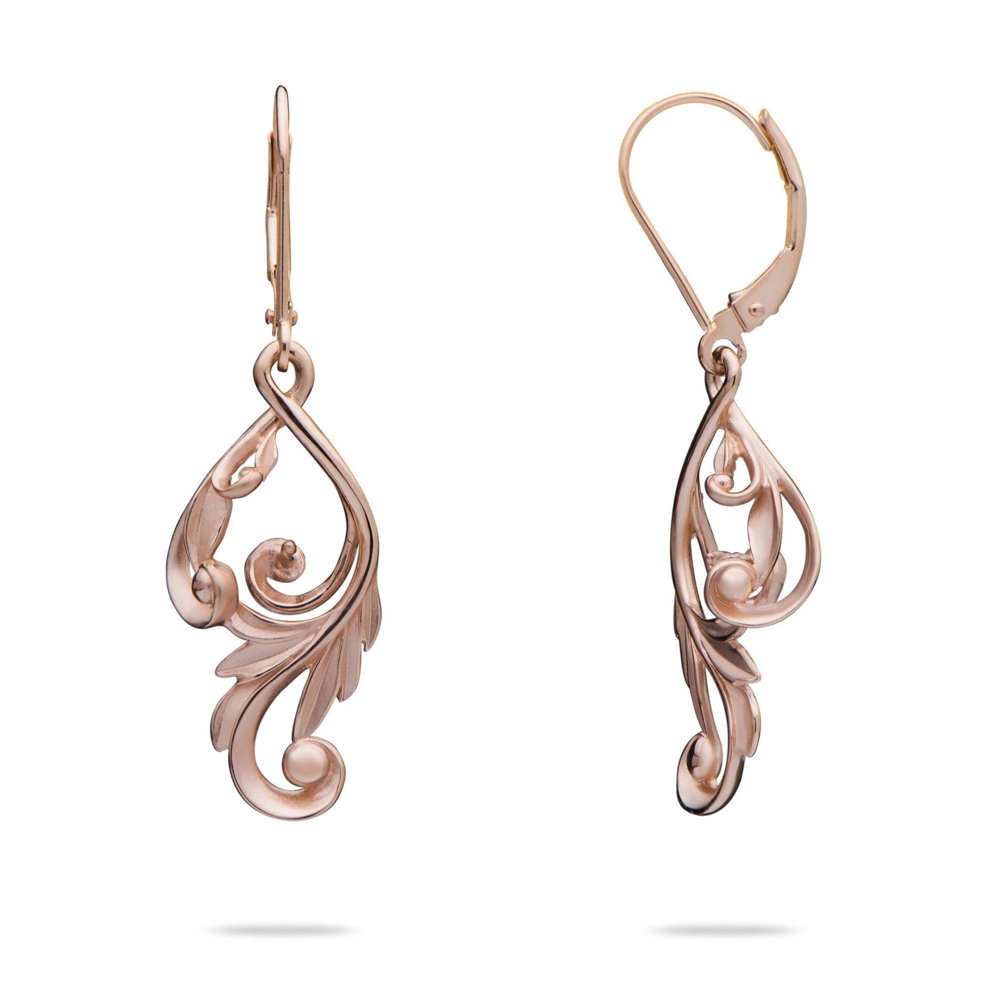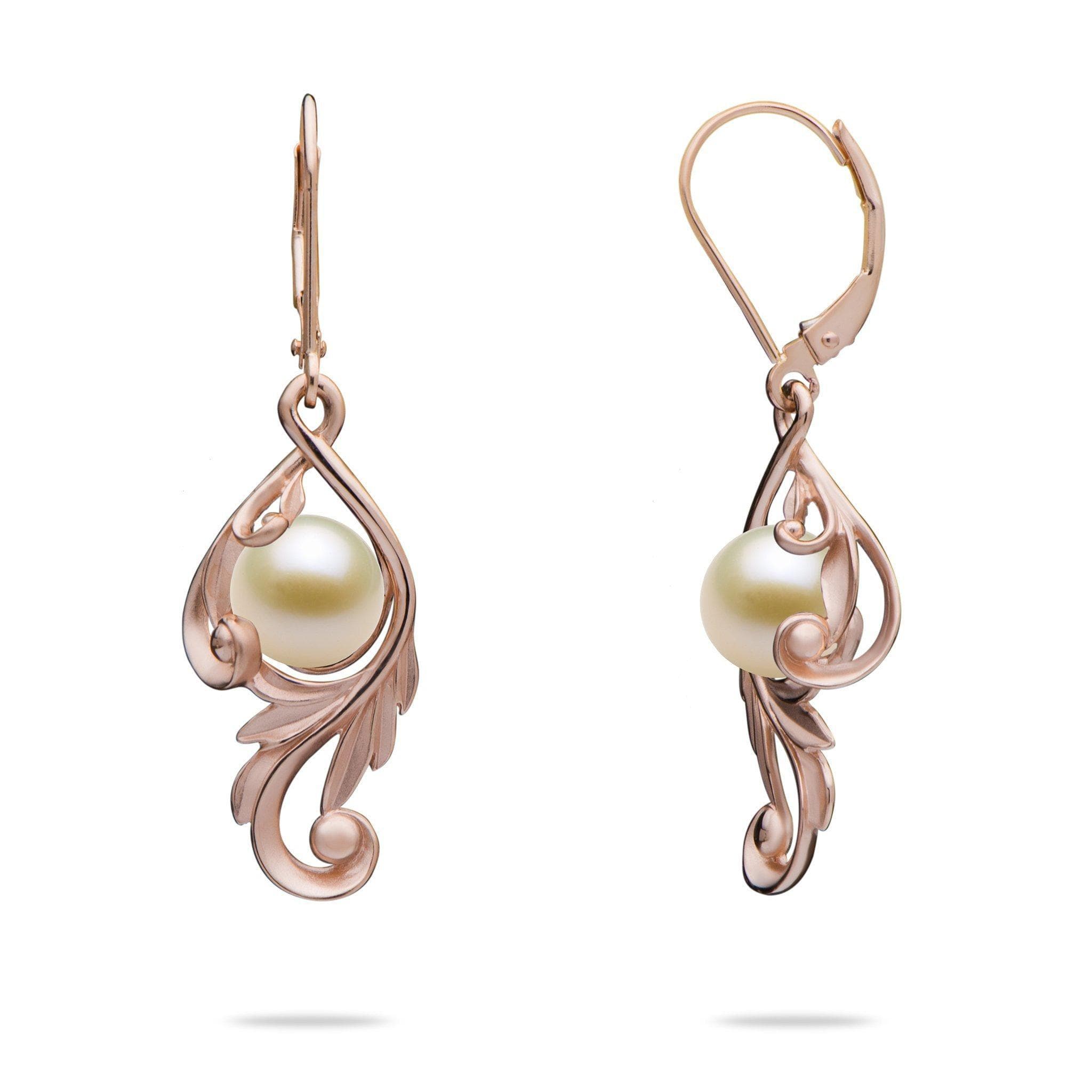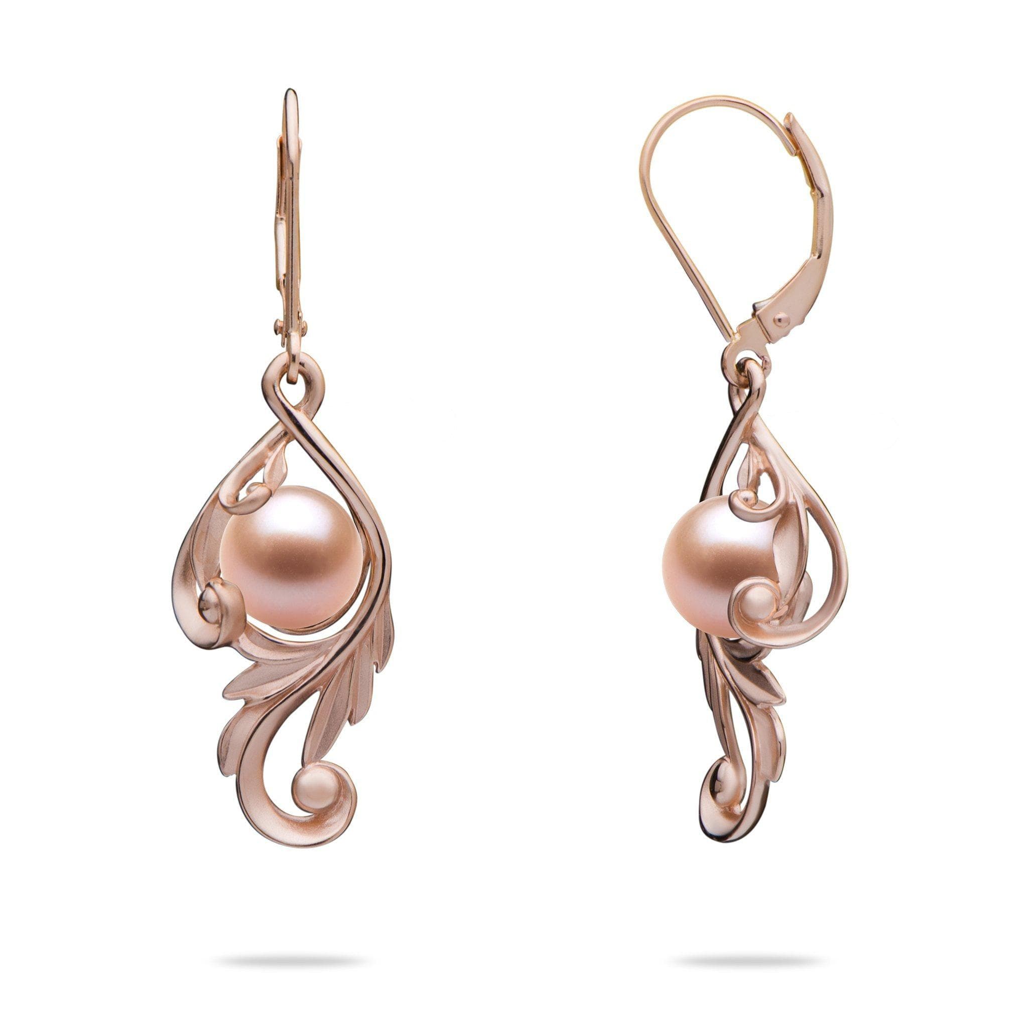 ローズゴールドでパールメールスクロールイヤリングを選んでください