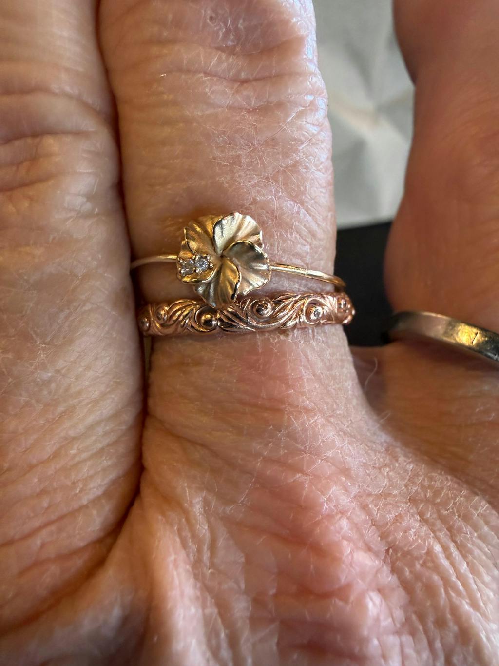 Mahalo for your lovely feedback on our Plumeria Ring. We are thrilled to hear that you find it beautiful and suitable for stacking with other rings!