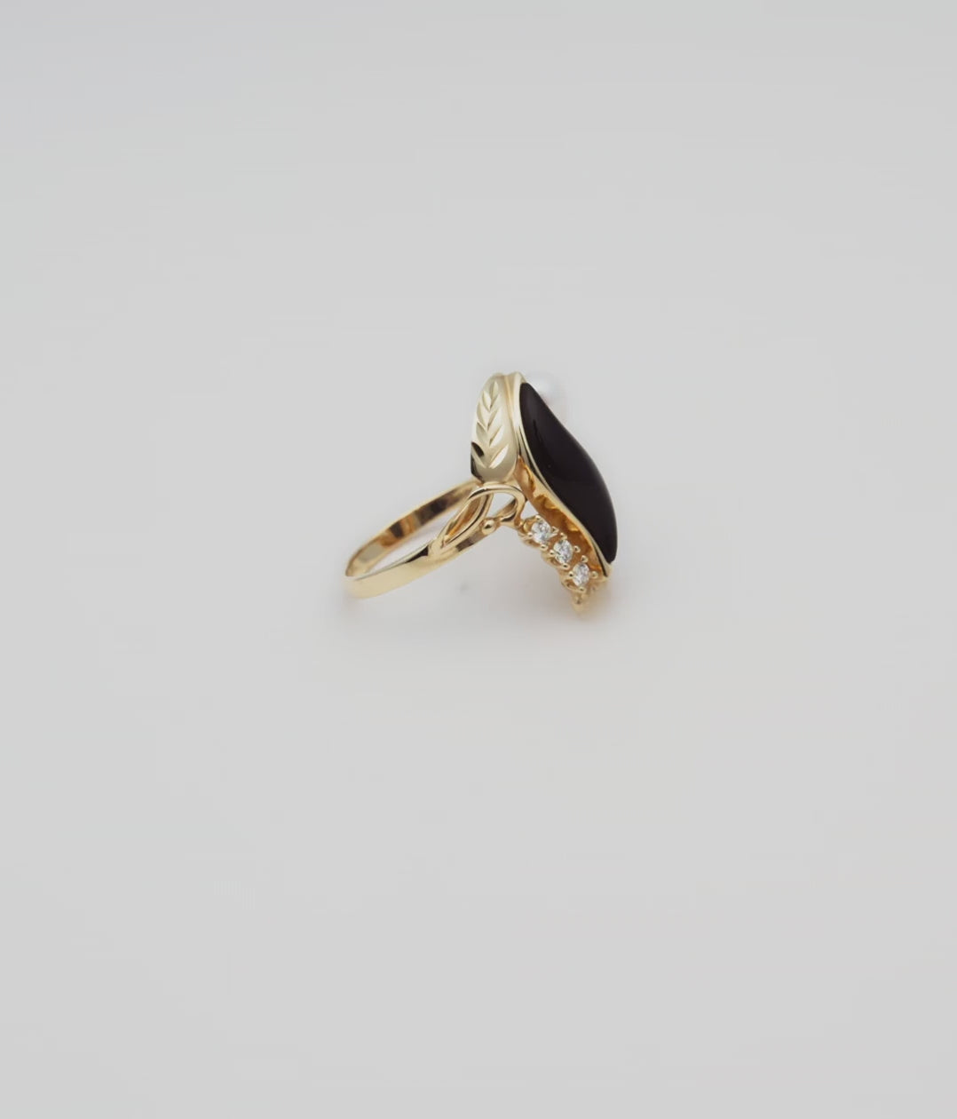 Paradise Black Coral & Pearl Ring in Gold with Diamonds - 21mm