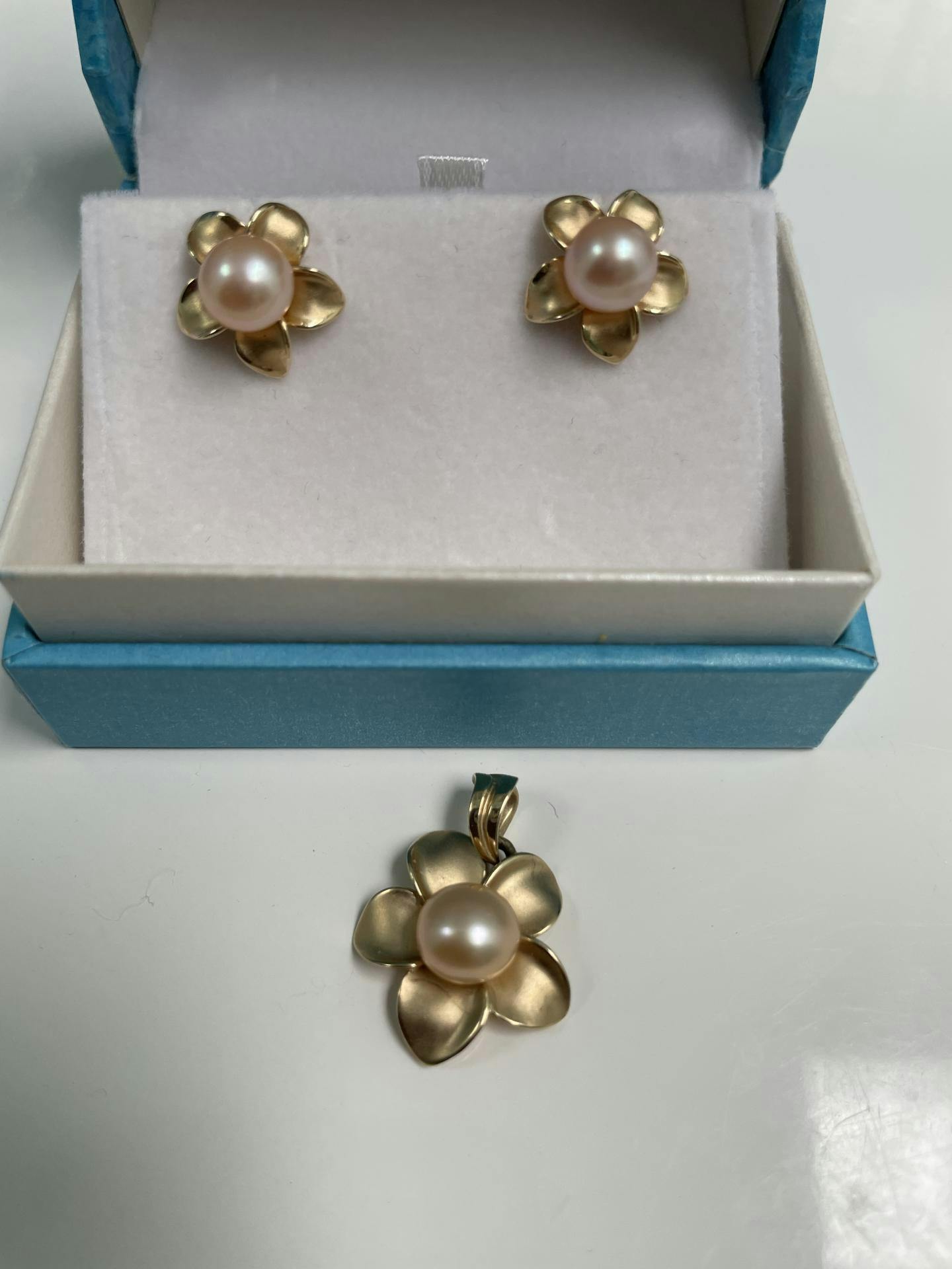 Pick A Pearl Plumeria Pendant in Gold - 18mm