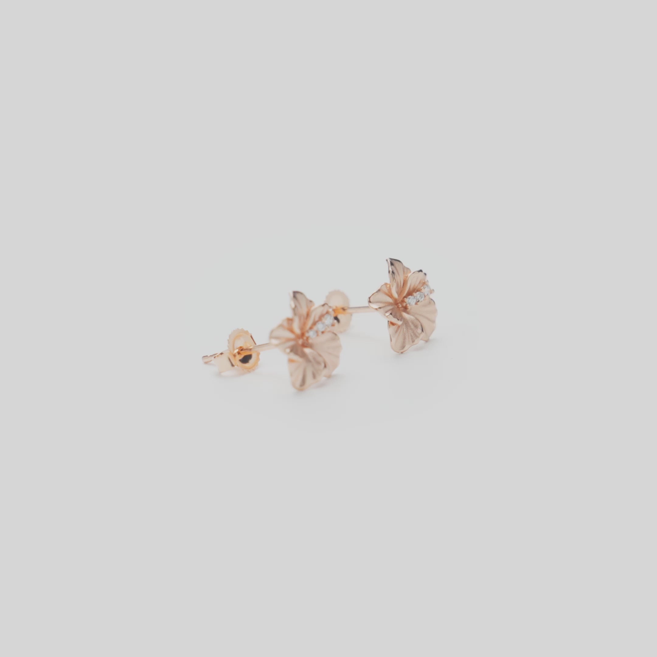 Hawaiian Gardens Hibiscus Earrings in Rose Gold with Diamonds - 9.5mm