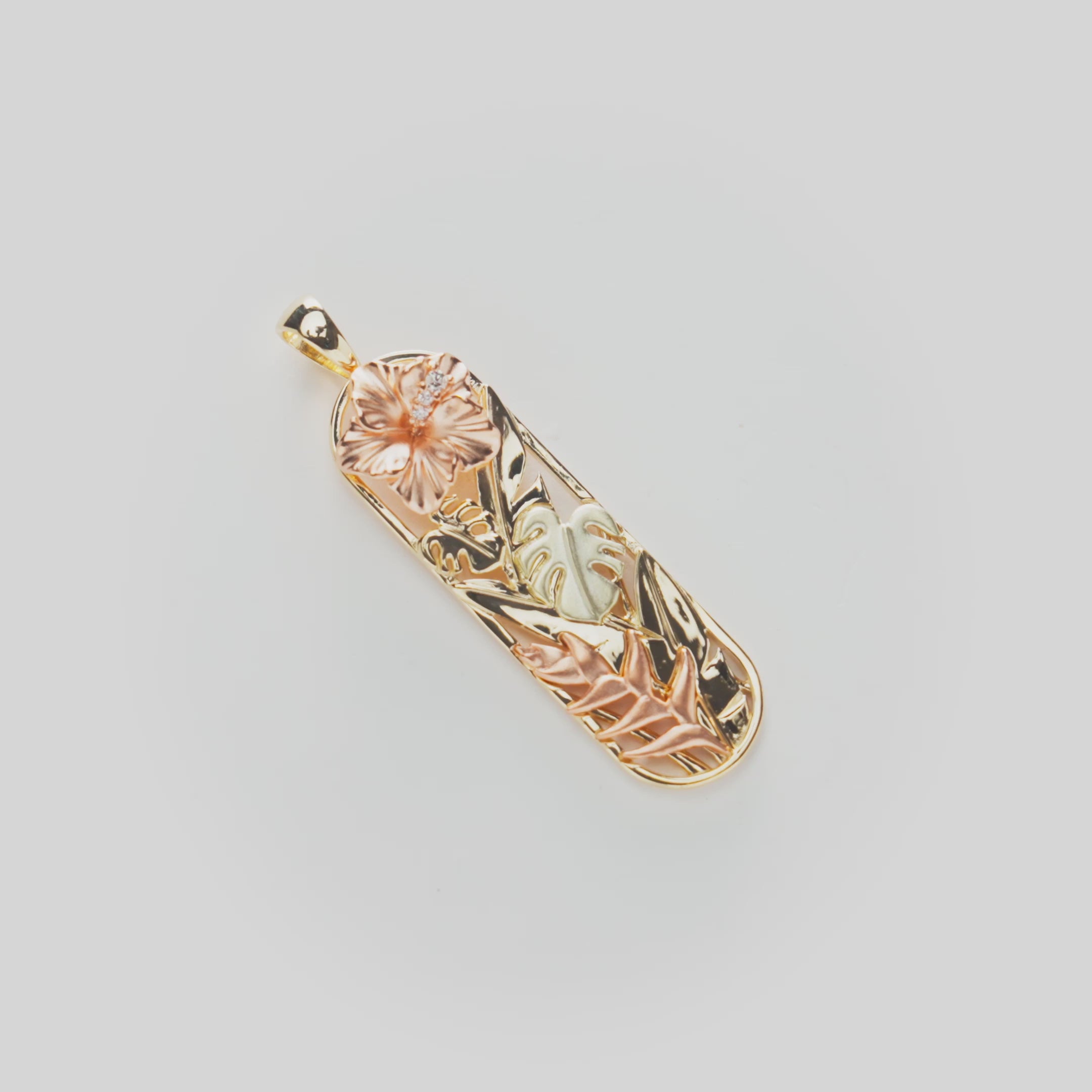 Hawaiian Gardens Hibiscus Pendant in Tri Color Gold with Diamonds - 32mm