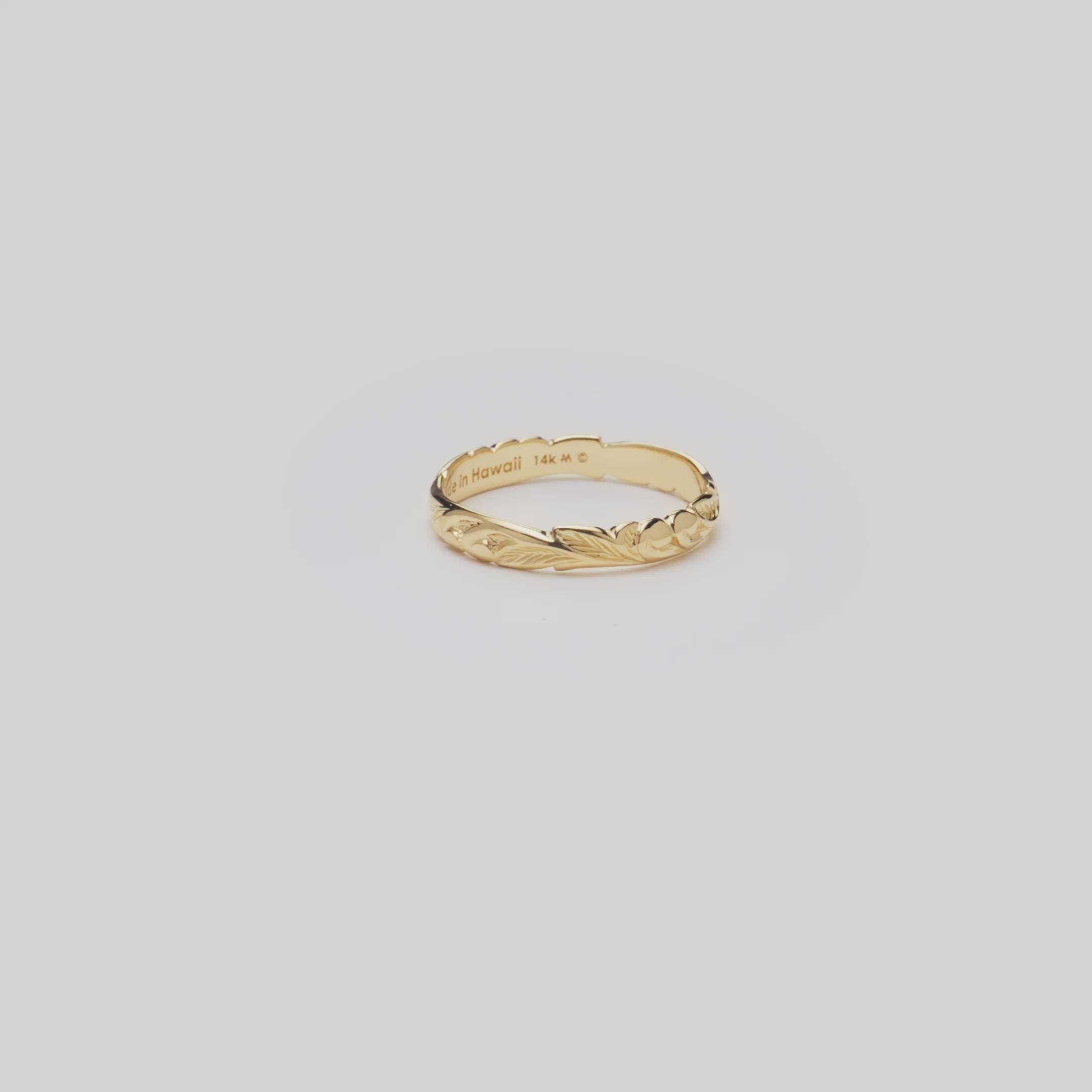 The Hawaiian Heirloom Old English Scroll Ring features ornate scrollwork with tropical Hawaiian maile leaves and ferns. This ring is the perfect wedding band for your special day, with its meaning of love, honor, and respect.
