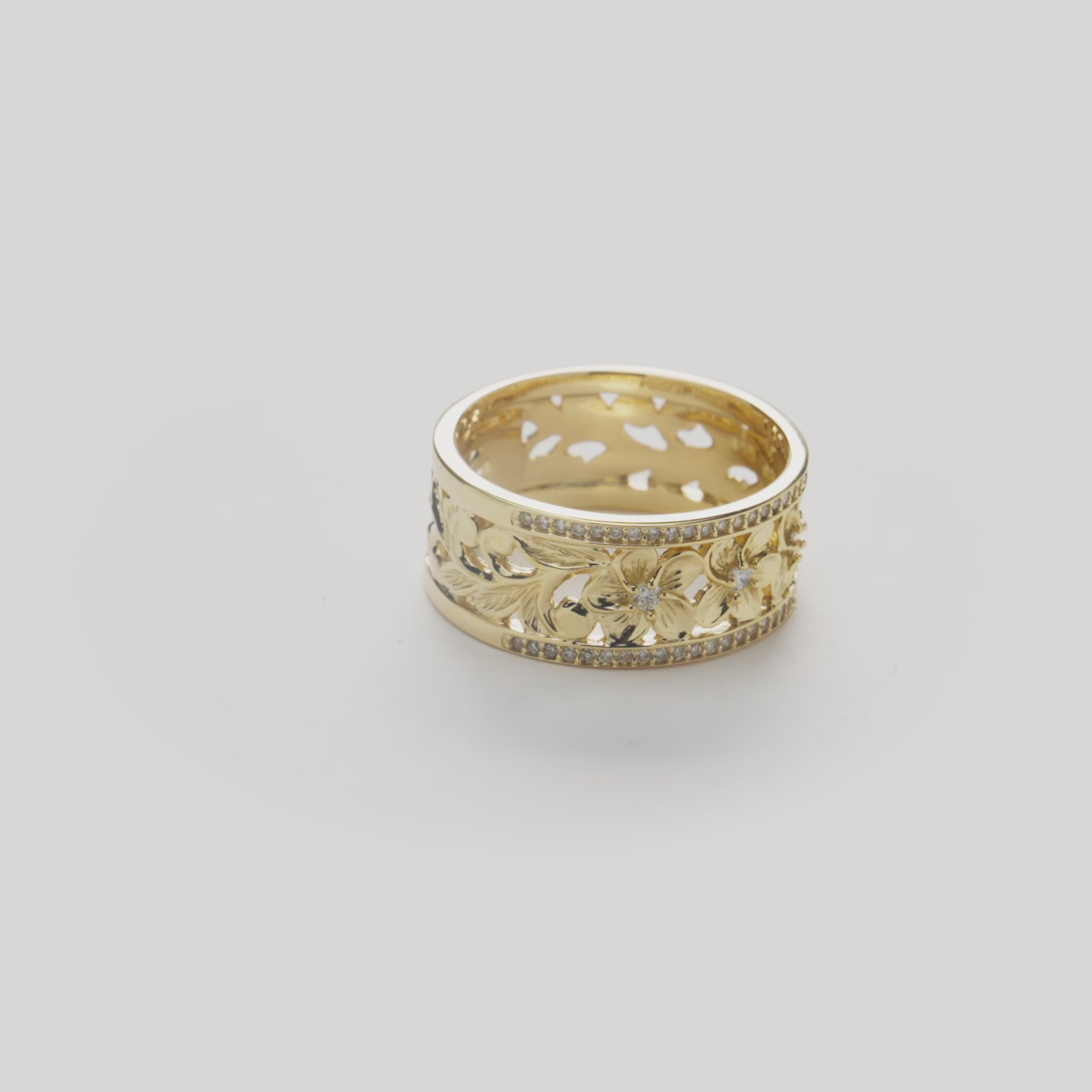 Hawaiian Heirloom Plumeria Ring in Gold with Diamonds -10mm