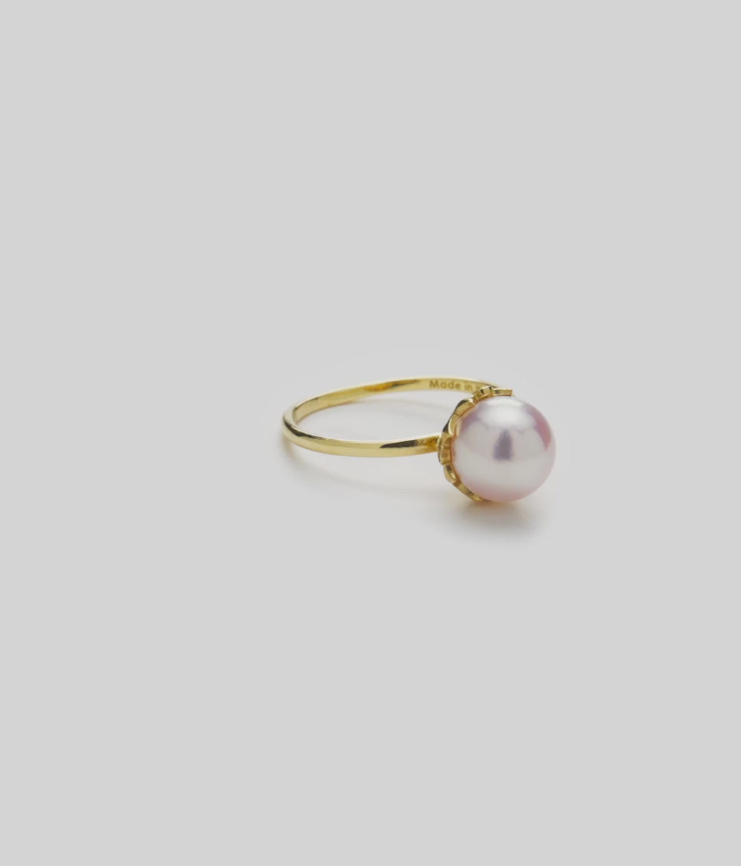 Hawaiian Quilted Star Akoya White Pearl Ring in Gold with Diamonds - 8mm