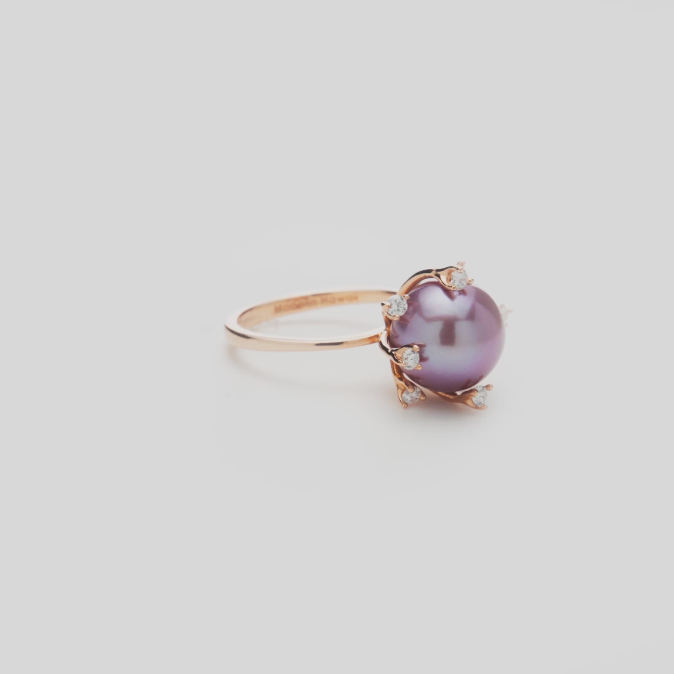 Protea Lilac Freshwater Pearl Ring in Rose Gold with Diamonds - 10-11mm