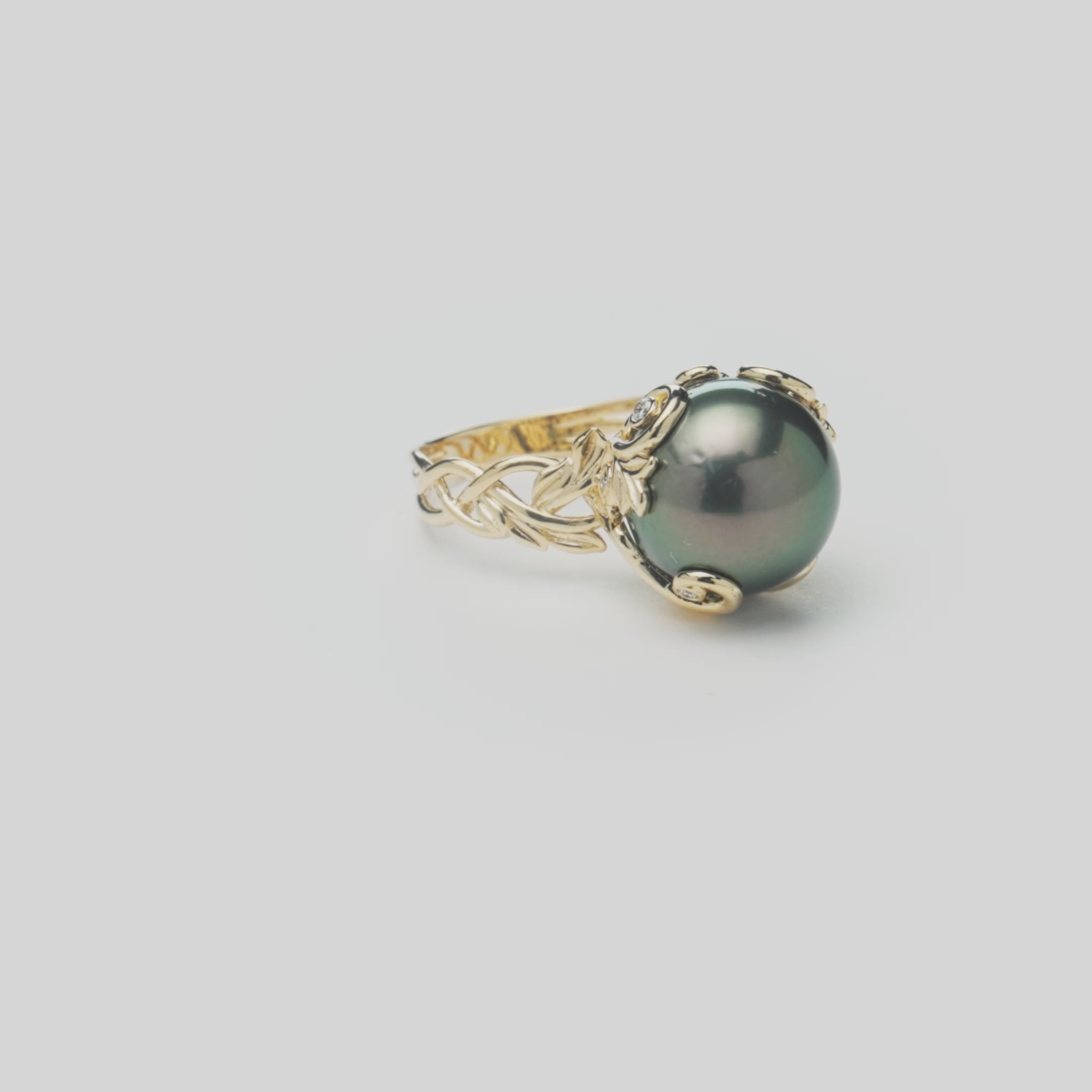 Living Heirloom Tahitian Black Pearl Ring in Gold with Diamonds - 12-13mm