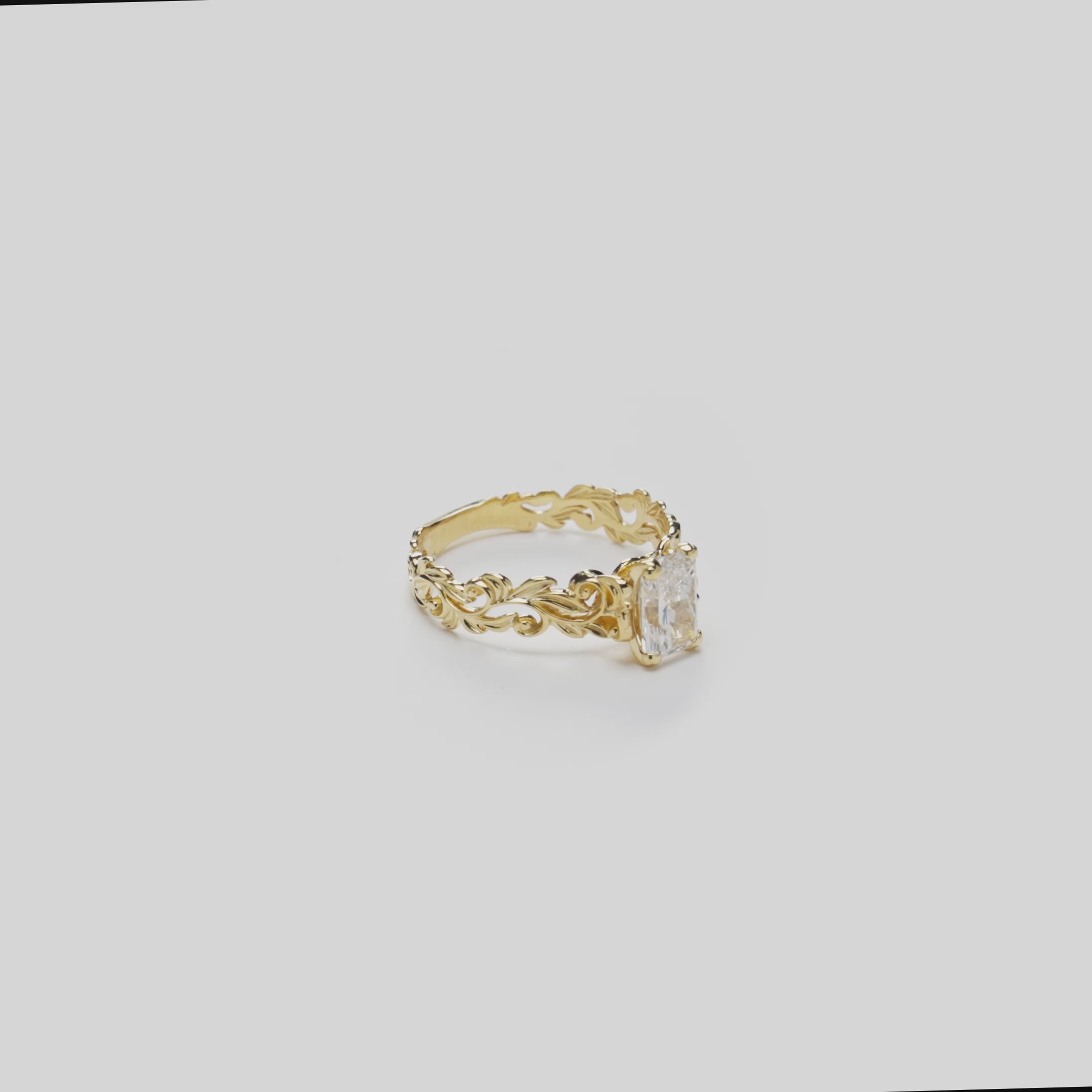 The royal beauty of the Living Heirloom Engagement Ring is undeniable. Elegant hāpu'u fern tips and vines of royal maile create its timeless scrollwork, embodying love, honor, respect, and new beginnings. The 1.5-carat radiant solitaire lab-grown diamond completes the exquisite design with stunning sparkle at every turn.