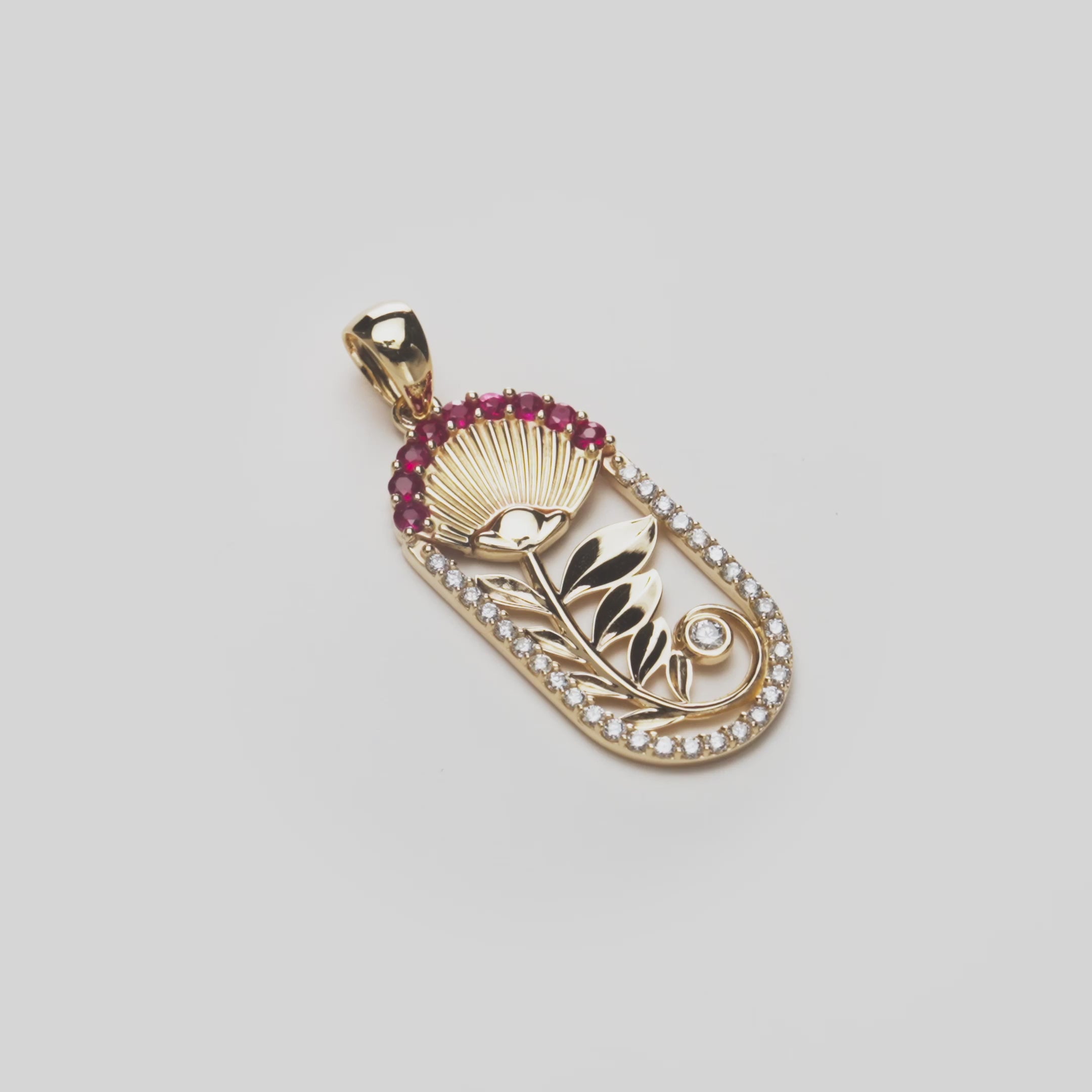 ʻŌhiʻa Lehua Ruby Pendant in Two Tone Gold with Diamonds - 27.5mm