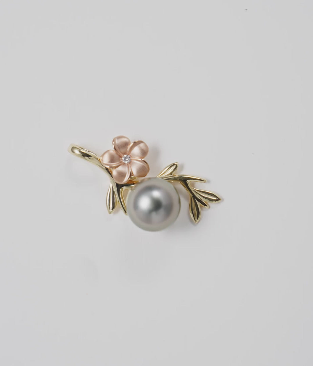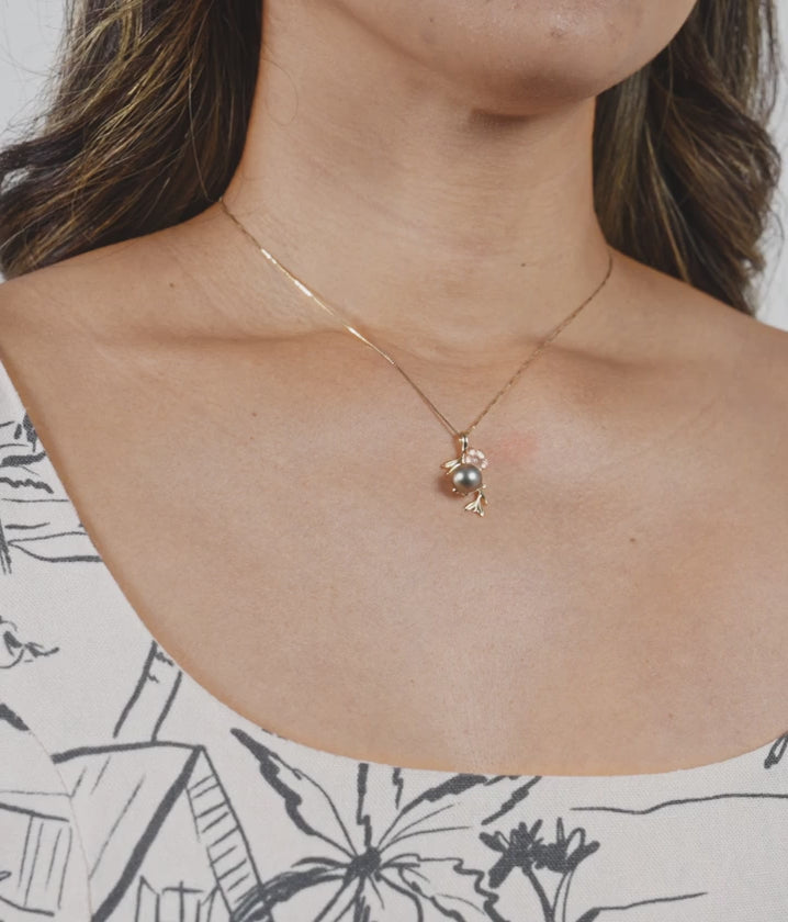 Pearls in Bloom Plumeria Tahitian Black Pearl Pendant in Two Tone Gold with Diamond - 25mm