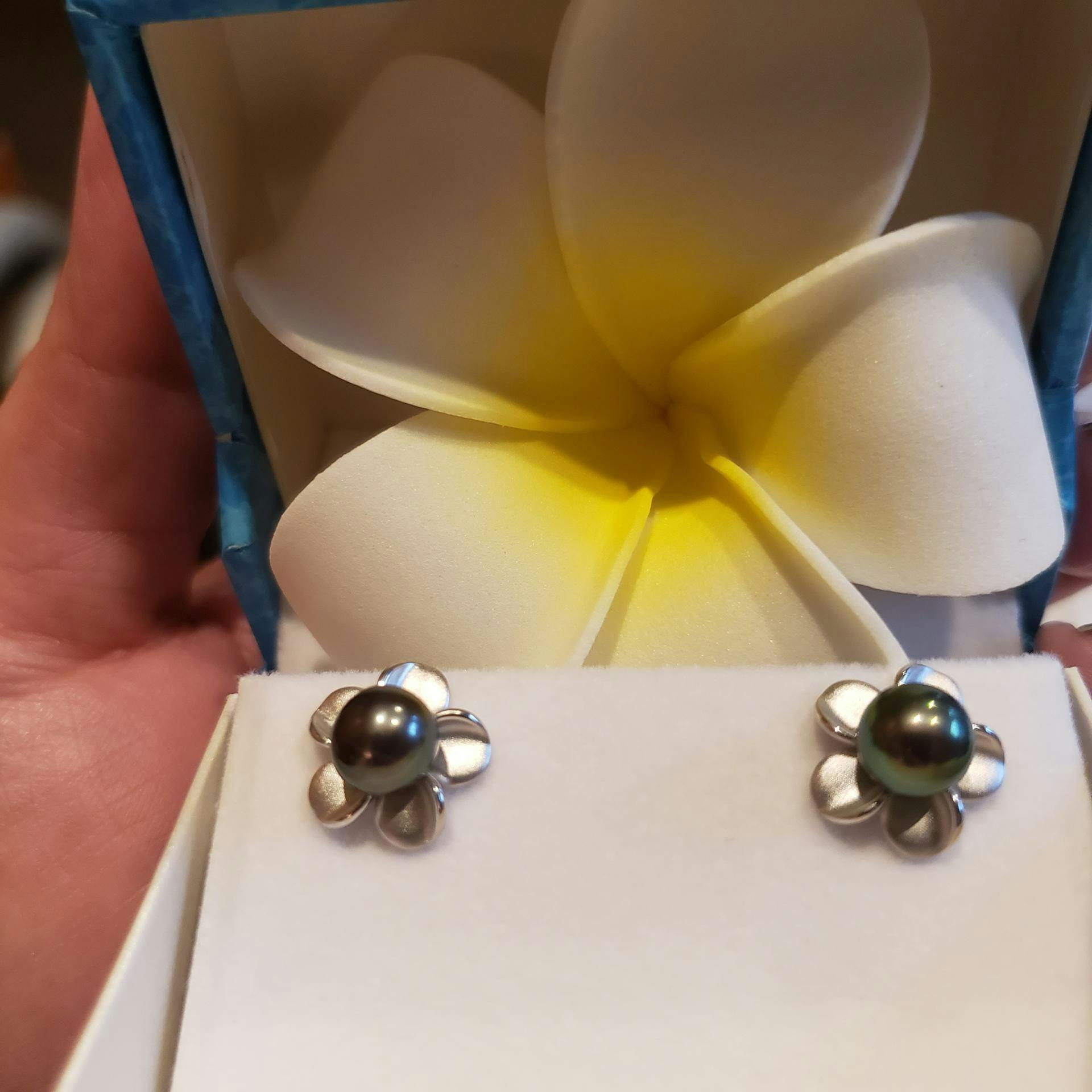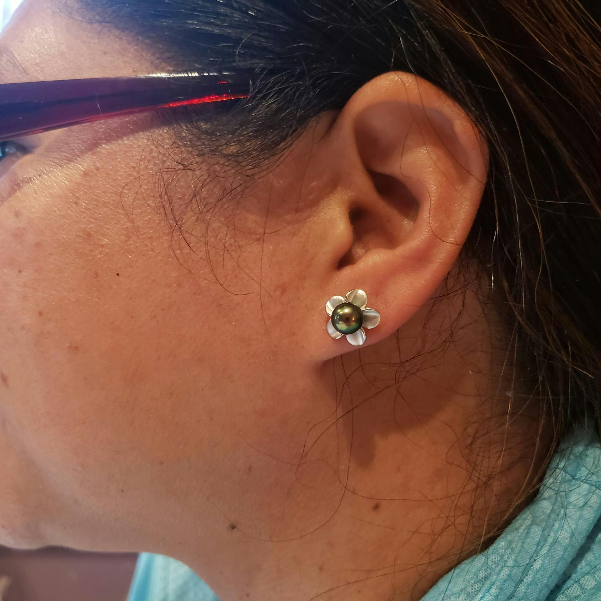 Pick A Pearl Plumeria Earrings in Sterling Silver - 13mm