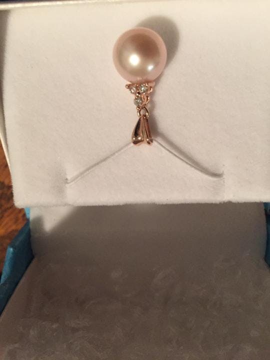 Pink Freshwater Pearl Pendant in Rose Gold with Diamonds - 10-11mm