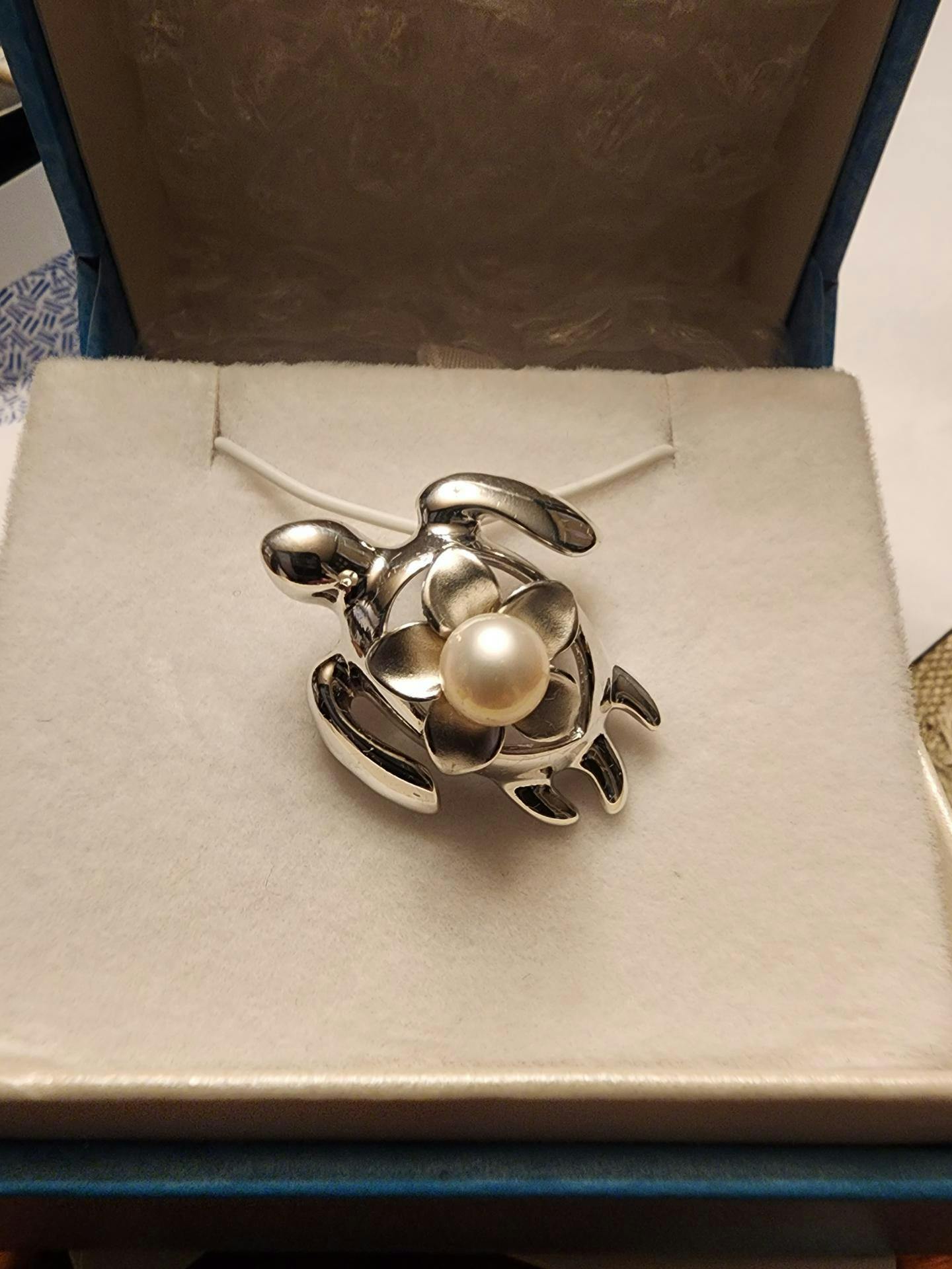 Pick A Pearl Plumeria Honu Pendant in Sterling Silver