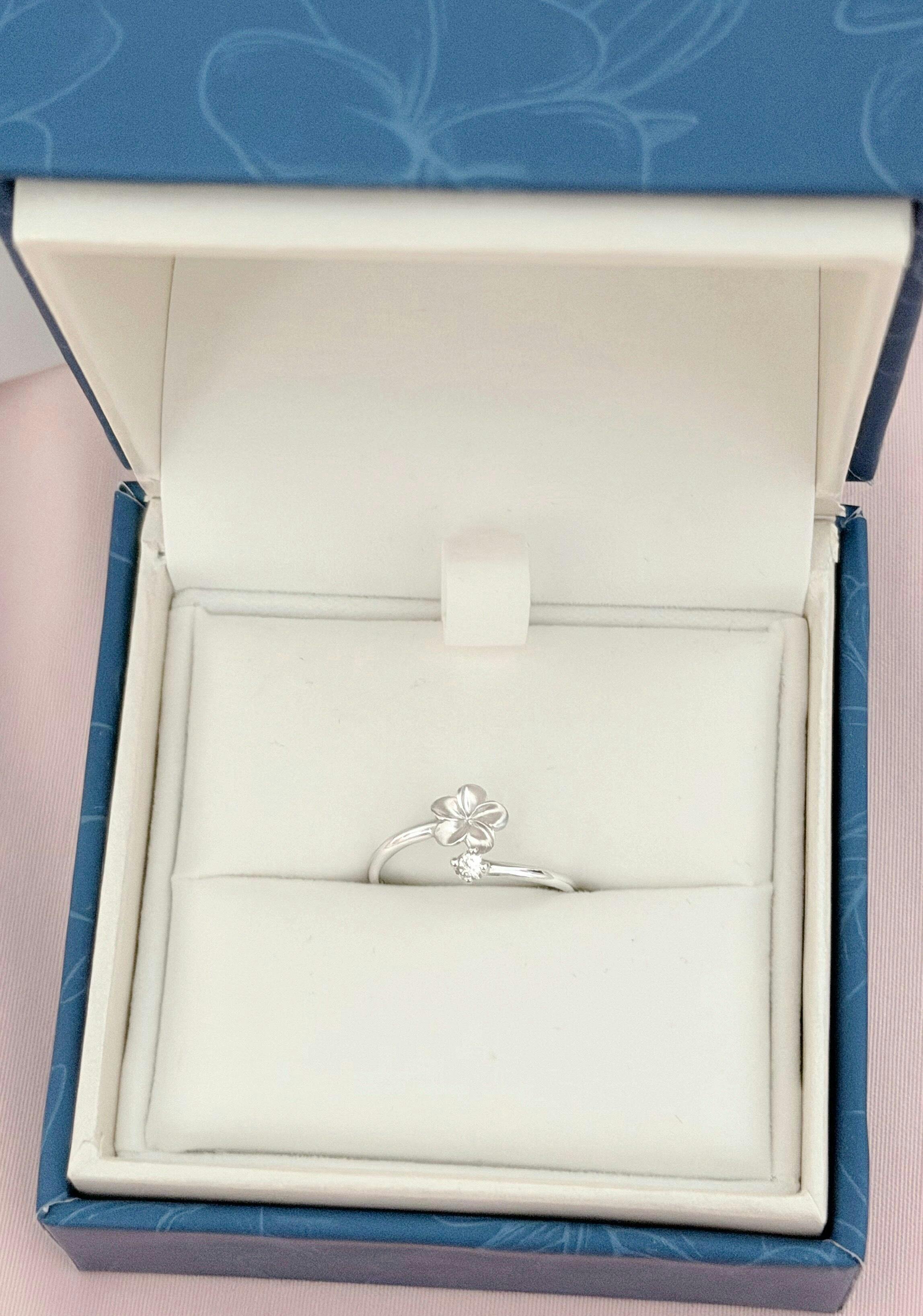 Plumeria Ring in White Gold with Diamond - 6mm